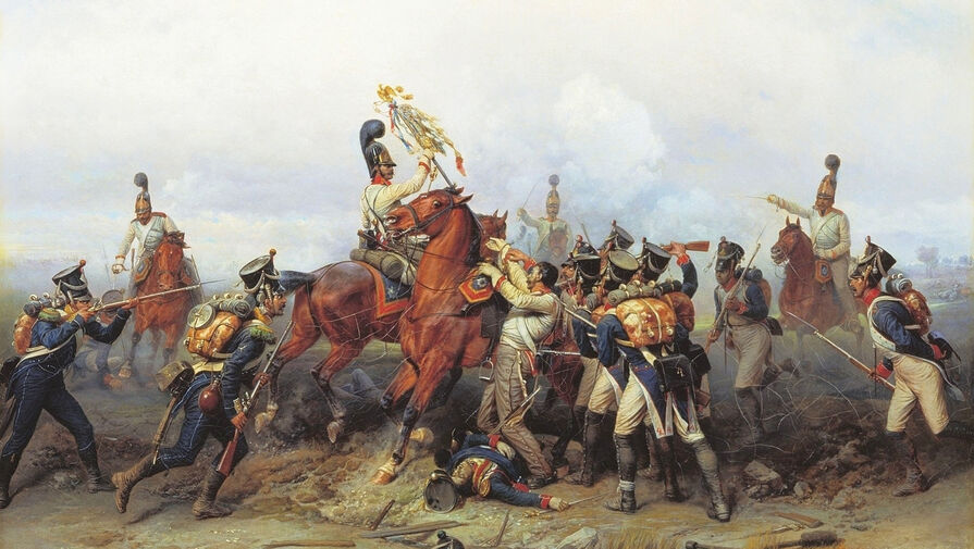 Реконструкция эпизода битвы при Аустерлице у холма Сантон у деревни Тварожна в Чехии