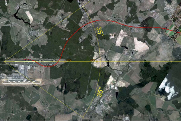 Экипаж попытался исправить ошибочный посадочный курс, но вследствие резкого маневра из левого разворота самолет вышел с задержкой, уже пролетев налево от полосы. Пришлось резко поворачивать вправо.