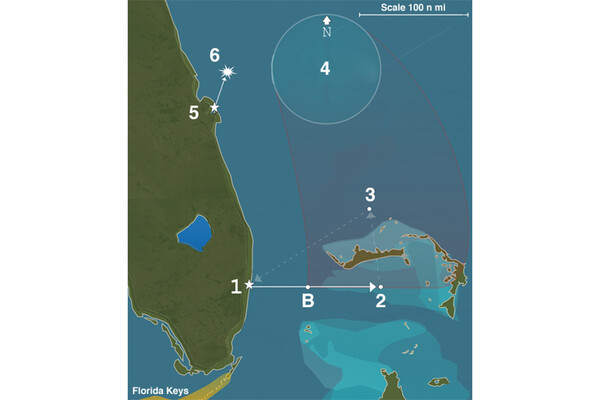 «Оба моих компаса вышли из строя, и я пытаюсь найти Форт-Лодердейл, Флорида. Я над сушей, но он сломан. Я уверен, что я над [островом] Флорида-Кис, но не знаю, насколько далеко, и не знаю, как добраться до Форт-Лодердейла».