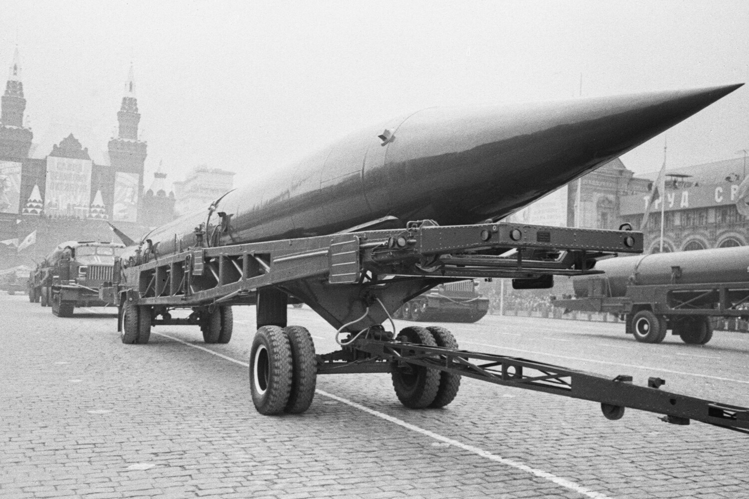 Баллистическая ракета средней дальности Р-12 на военном параде на Красной площади, посвященном 46-й годовщине Великой Октябрьской Социалистической революции, 1963 год