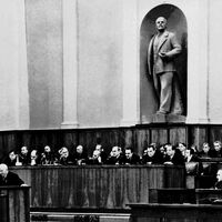 Внутрипартийная борьба не прекращалась, и Берию затем сверг и расстрелял Никита Хрущев, еще сильнее ударив по сталинскому наследию. Но несмотря на все эти фактические перемены, происходили они негласно: официально Сталин оставался великим вождем, лежащим рядом с Лениным в мавзолее. С учетом того, что на вере в Сталина были воспитаны два поколения советских людей, любая попытка разоблачить мифы о нем угрожала стабильности советской власти. Тем не менее, 25 февраля 1956 года Хрущев, будучи первым секретарем ЦК, наконец решился на это и выступил на XX съезде партии с докладом, который вполне тянул на еще одну революцию.
