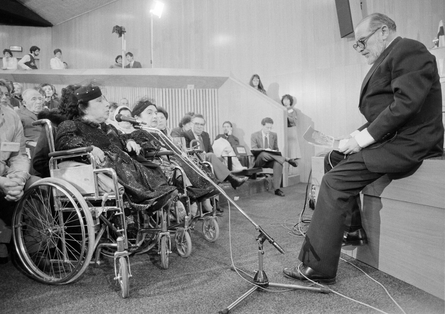 «Три раза в неделю нас везли в главный лагерь Освенцим на эксперименты. Они длились от шести до восьми часов. Мы должны были сидеть голыми в комнате. Каждую часть нашего тела измеряли, ощупывали, сравнивали со столами и фотографировали. Каждое движение тщательно изучали. Я чувствовал себя животным в клетке. Три раза в неделю нас везли в лабораторию крови. Там нам вводили микробы и химические вещества, и у нас брали много крови», — вспоминала одна из жертв Менгеле, Ева Мозес Кор.