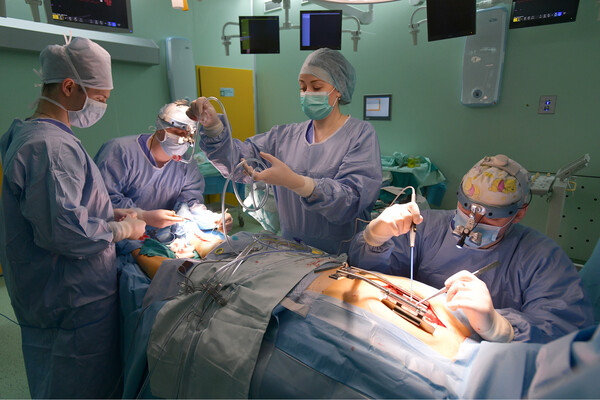 — Иногда мы обходимся и без остановки сердца — все зависит от величины разных камер сердца, от самой мышечной структуры сердца, от характера ранений. Очень помогает в этом гибридная операционная, где две-три хирургические бригады могут работать одновременно. И тут же рентген-комплекс, который необходим для рентген-эндоваскулярной хирургии (доступ через сосуды), — ведь не бывает поражено только одно сердце, — тут же идет работа и с крупными сосудами. То есть, допустим, я работаю на открытом сердце, а рядом эндоваскулярный хирург устанавливает стенты, двигаясь через сосуд.