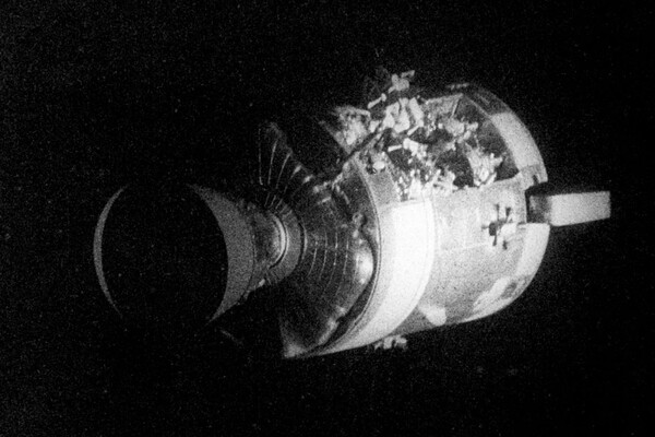 Спустя полчаса от «Одиссея» отстыковали служебный модуль, где находились двигатели и основные системы, оставив лишь обитаемую капсулу. В тот момент астронавты поняли, насколько крупно им повезло — через иллюминатор они увидели, что борт служебного модуля разворочен взрывом, а сопло двигателя повреждено — то есть отказ от его использования оказался верным решением.