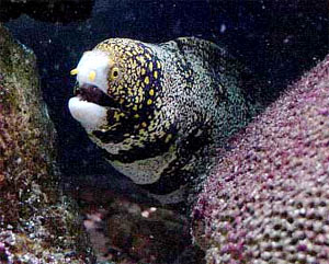 Мурена хватает добычу, выбрасывая вперед дополнительные челюсти