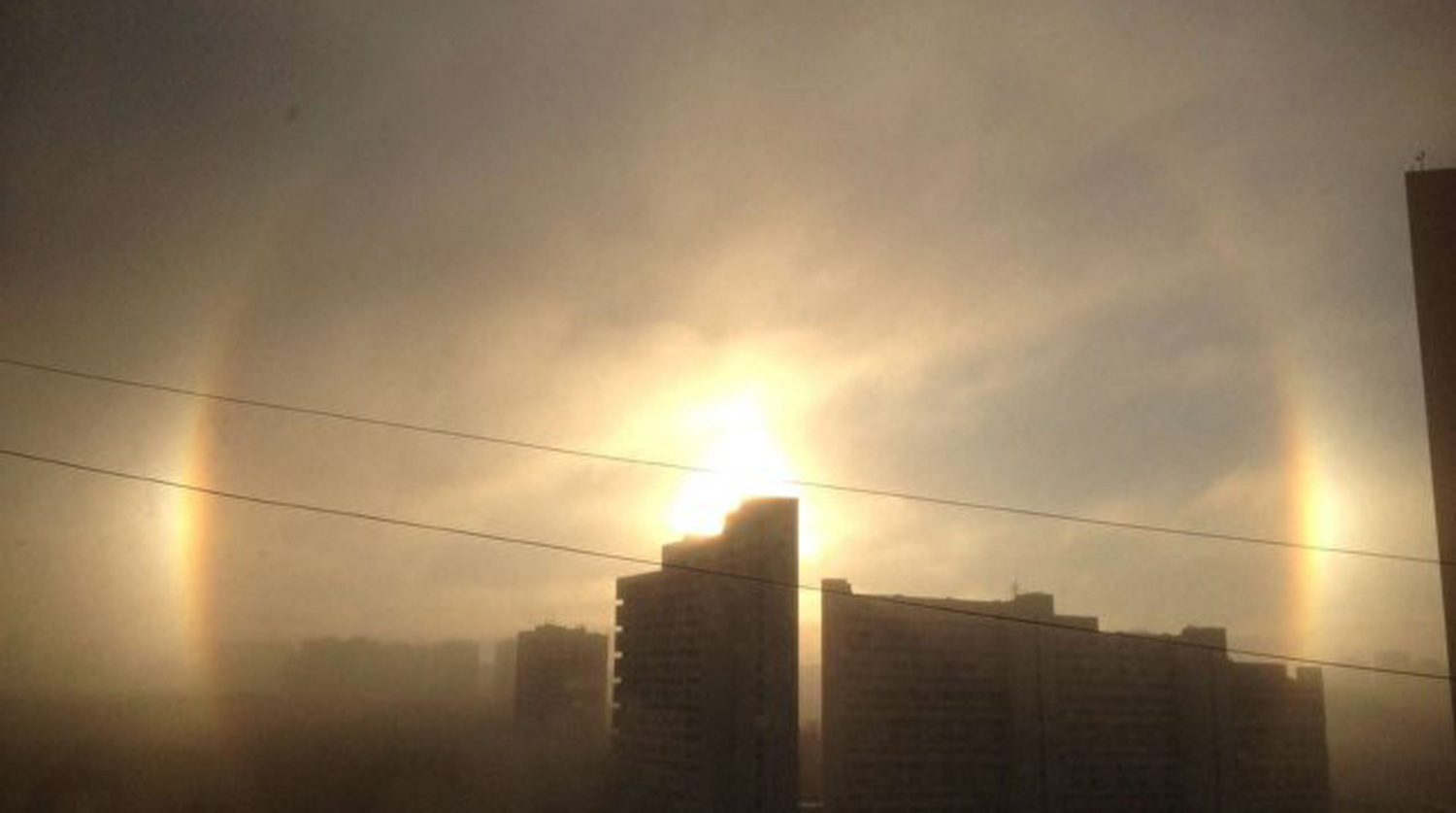 Жители города смогли увидеть сразу три ярких свечения. Чаще всего круги гало белые, однако, иногда их края могут иметь радужные цвета.
