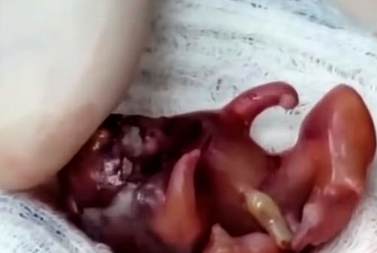 Чтобы избежать повреждения внутренних органов девочки при росте близнеца, на 37 неделе беременности врачи провели матери кесарево сечение. Днем позже они прооперировали девочку и извлекли из нее близнеца-паразита длиной в 4,5 см. У сестры не было ни сердца, ни мозга, но имелись руки, ноги и собственная пуповина, которая соединяла ее с девочкой. Когда врачи ее перерезали, близнец погиб.
