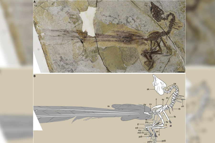 В Китае нашли птицу-современника динозавров с огромным бесполезным хвостом