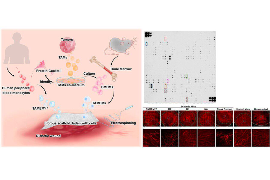 В ходе эксперимента нормальные макрофаги, полученные из костного мозга мыши, приобрели набор прорегенеративных функций после совместного культивирования с опухолевыми образцами. При переносе на раневое ложе мышей с диабетом эти клетки поспособствовали клеточной пролиферации, устранили воспаление и нормализовали сеть сосудов.