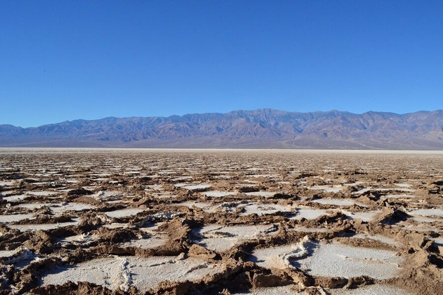 В местах с особенно высоким содержанием соли соль также кристаллизуется на поверхности. Со временем засыхающая корка образует приподнятые горбы, которые создают узор в виде сот.