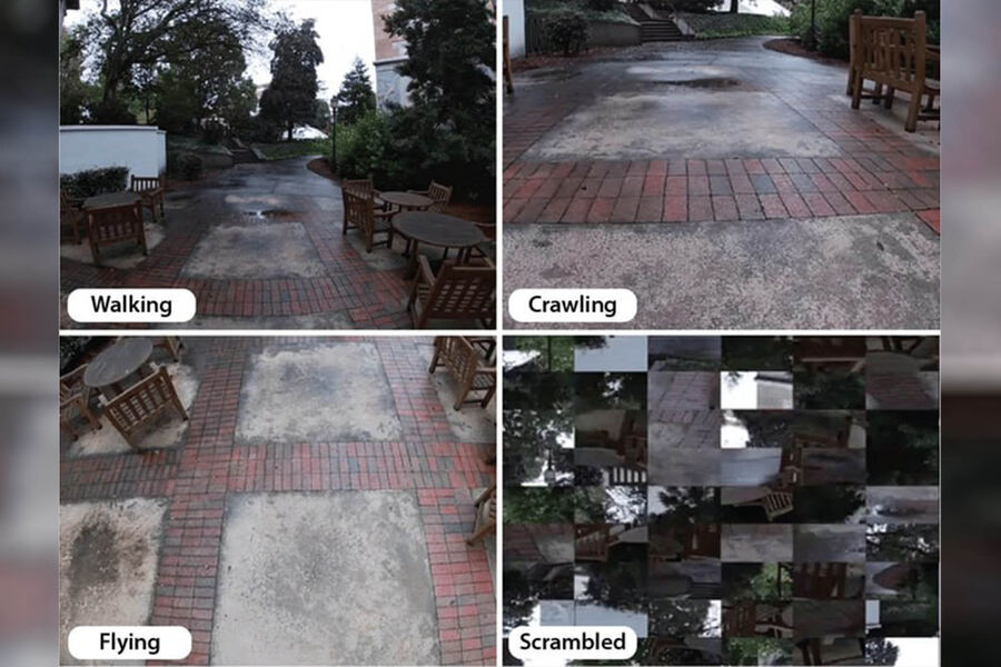 Чтобы прояснить этот вопрос, Дилкс и его коллеги сняли ряд видео от первого лица. Все они были сняты в одном месте, изменялся лишь метод перемещения: ходьба, ползание и полет (который просто так человеку не доступен). При просмотре подобных видео мозг как правило начинает работать так, как если бы перед ним были реальные события, и благодаря этому ученые смогли исследовать реакцию мозга на разные методы перемещения с помощью функциональной магнитно-резонансной томографии. В исследовании приняли участие 15 взрослых добровольцев.