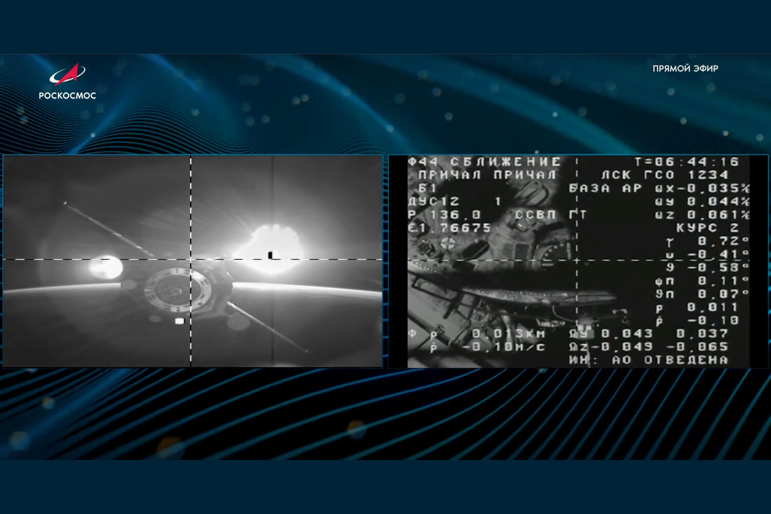 «Сегодня в 06:45:18 мск грузовик в автоматическом режиме пристыковался к служебному модулю «Звезда» российского сегмента», — сообщили в корпорации.