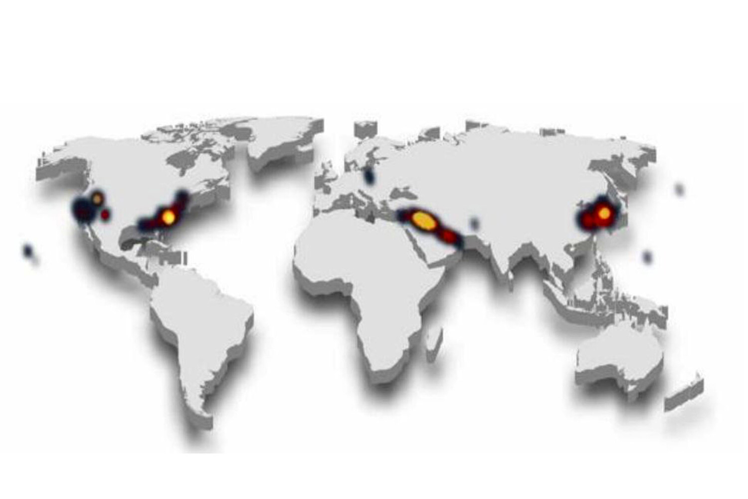 Согласно карте, за последние 27 лет НЛО чаще всего видели на восточном и западном побережьях США, вблизи японских городов Хиросима и Нагасаки, а также над такими крупными центрами Ближнего Востока, как Багдад, Доха и Дубай.