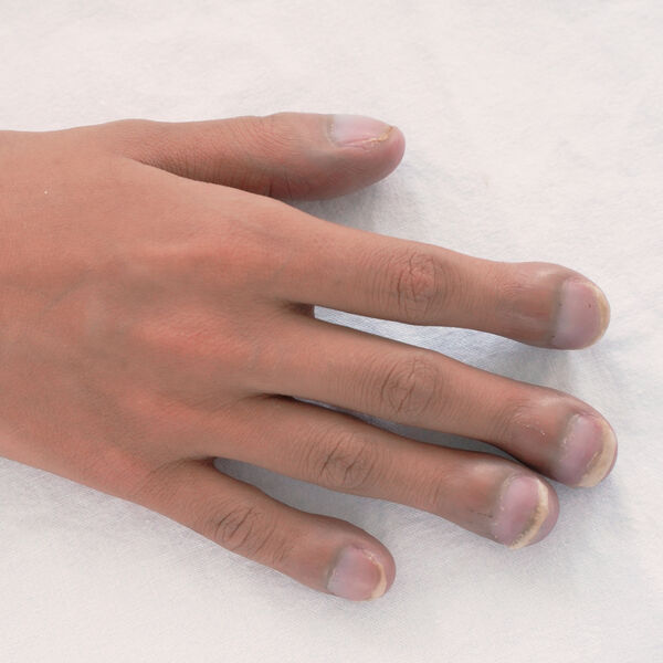 У здорового человека пальцы на руках обычно ровные, а ногти — розовые, объяснила врач. Однако длительное кислородное голодание может привести к утолщению концевых фаланг, которые становятся похожи на барабанные палочки, а также к изменению ногтей: они становятся выпуклыми, похожими на часовые стекла. Это состояние чаще встречается у мужчин и известно как «пальцы Гиппократа», поскольку Гиппократ впервые описал его в V веке до нашей эры.