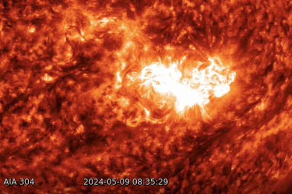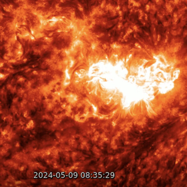 AR3664 продолжает производить мощные вспышки. Последний взрыв на Солнце произошел 9 мая в 09:13 по Гринвичу (12:13 по московскому времени). Извержению присвоили самый высокий класс X, а его мощность составила 2,2.