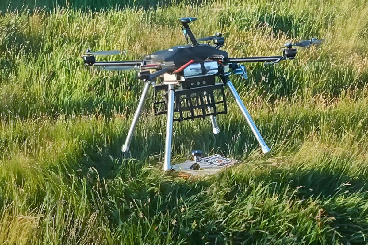 Сначала разведывательный дрон летит над местностью, где будет проходить геологоразведка и составляет карту местности. На основе этой карты выбираются точки куда будут установлены сейсмодатчики, и доставляет другой дрон. Он при помощи специального крепления берет датчик и доставляет его на точку. Таким образом несколько дронов могут закинуть несколько датчиков одновременно.