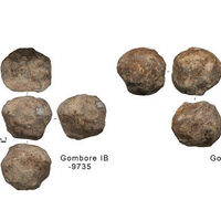 Кроме базальтовых сфер, ученые нашли фрагменты костей гоминидов. В Гомборе IB были обнаружены кости Homo cf. ergaster, в Гомборе II-1 — фрагменты черепа Homo heidelbergensis, а в Гарба IIIE — фрагменты Homo sapiens.