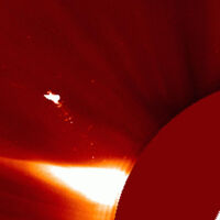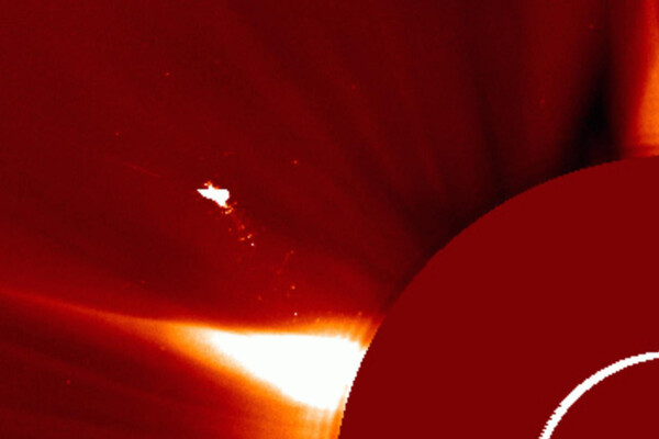 «Красивый и отчасти загадочный снимок поступил вчера с одного из телескопов LASCO. На изображении как будто бы отчётливо видна «птица» или «летательный аппарат» с тянущимся за ним «пламенным следом», — говорится в сообщении.