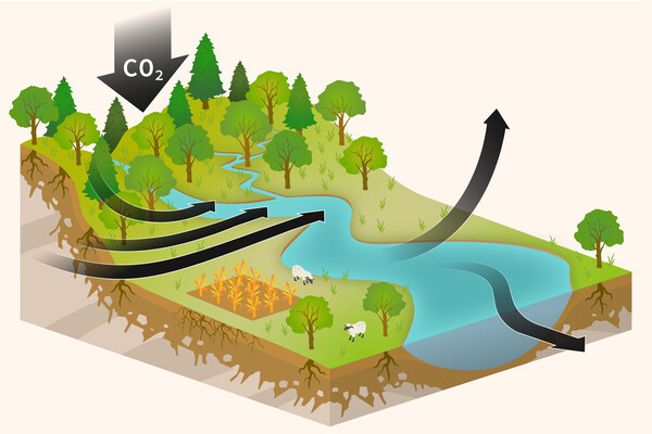 Реки ежегодно выбрасывают около двух гигатонн углерода, что составляет значительную долю по сравнению с антропогенными выбросами (10–15 гигатонн в год).