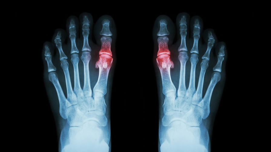 Подагра является наиболее распространенным видом воспалительного артрита, вызванного отложениями в суставах солей мочевой кислоты. Заболевание сопровождается нестерпимой, быстро нарастающей и проходящей за несколько часов или суток болью в суставах, при этом кожа над ними краснеет, а сами они увеличиваются в объеме. Из других симптомов — повышенная температура тела, слабость, потливость. В запущенных случаях на суставах могут образовываться наросты.