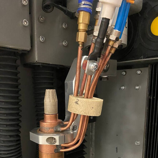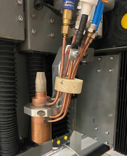 В новом плазмотроне центральная трубка служит каналом для подачи порошка и одновременно первым нагревательным элементом. Второй нагреватель — кольцевое сопло, расположенное всего в полутора миллиметрах от центральной трубки. Вместе они формируют две плазменные дуги, которые работают как единый поток.