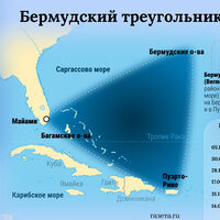 Бермудский треугольник — область в Атлантическом океане, ограниченная Флоридой, Бермудскими островами и Пуэрто-Рико. Согласно распространенному мнению, в этом районе с необъяснимой частотой пропадают самолеты и морские суда. Наиболее известный случай — исчезновение пяти американских бомбардировщиков в 1945 году.