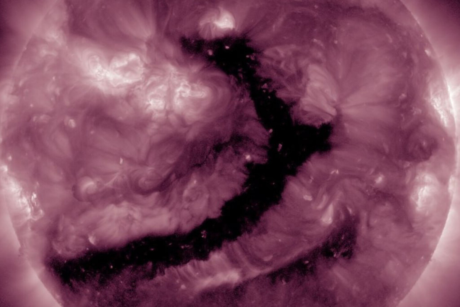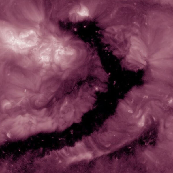 Астрономы сообщают, что источник возмущений хорошо различим на Солнце — это довольно заметная корональная дыра нетипичной формы, похожая на гигантский разлом, который протянулся от южного до северного полюса звезды. Как и большинство корональных дыр, нынешняя является долгоживущим образованием и в прошлом месяце уже проходила по диску Солнца, напоминая тогда дракона.