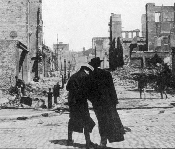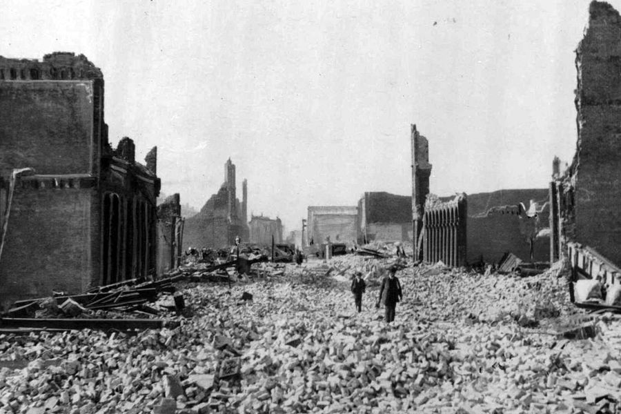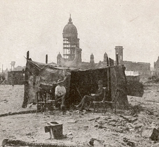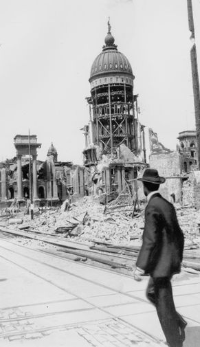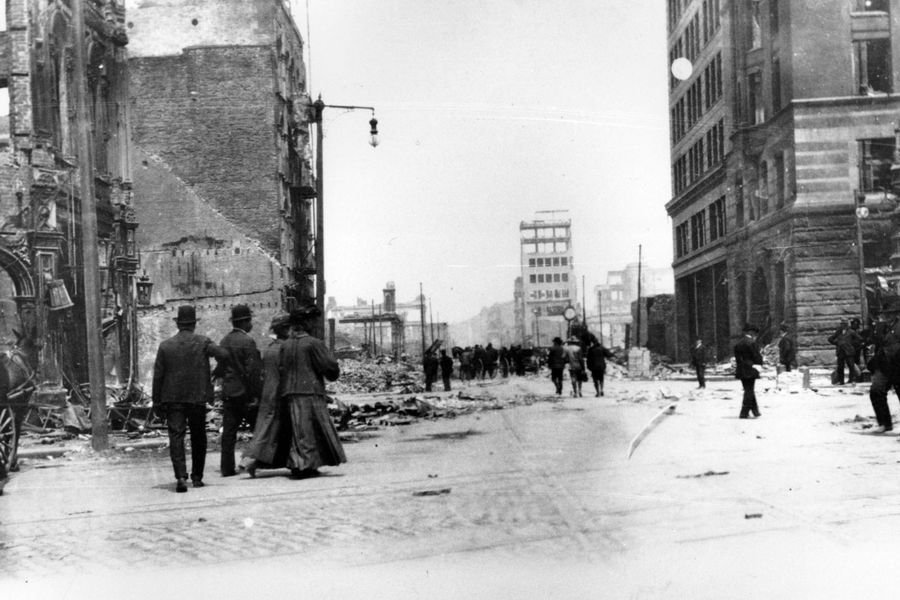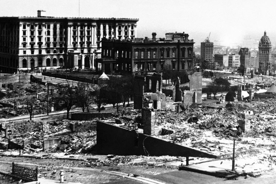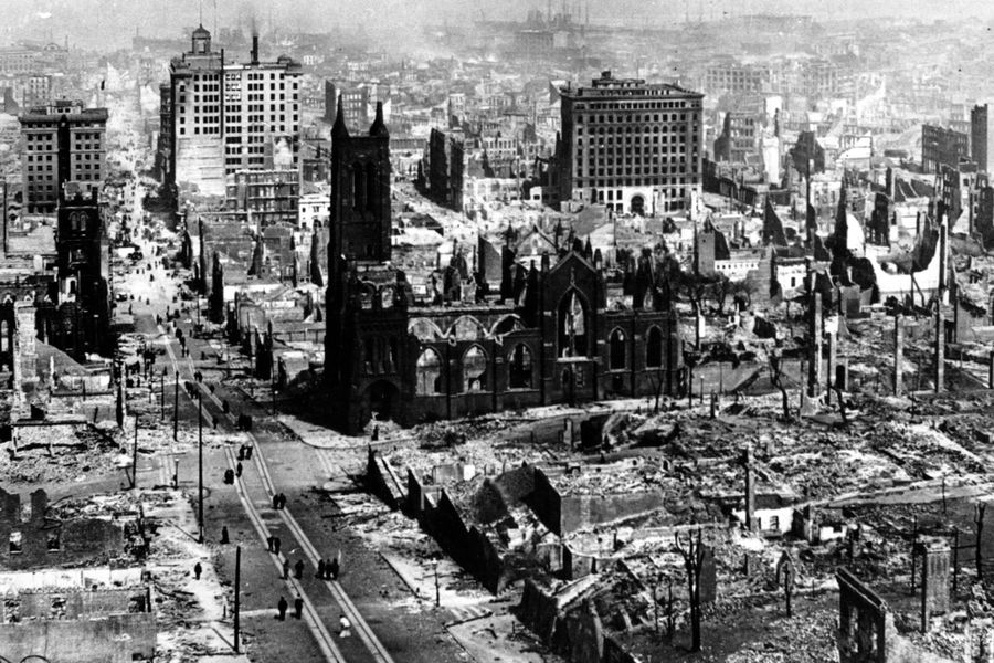 18 апреля 1906 года, в 5 часов 12 минут утра в Сан-Франциско произошло сильное землетрясение с магнитудой 8,3. Оно продолжалось около 40 секунд, но привело к полному или частичному разрушению 80% городских зданий. Многих жителей выкинуло из кроватей — они даже не успели понять, в чем дело.
