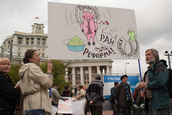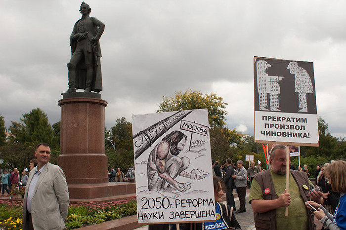 «Лучшим выходом является отзыв законопроекта из Государственной думы, его широкое обсуждение с научным сообществом и проведение необходимых изменений в нынешней системе управления РАН», — сказал на митинге председатель профсоюза работников РАН Виктор Калинушкин.