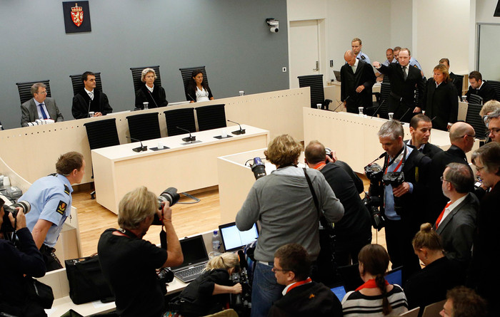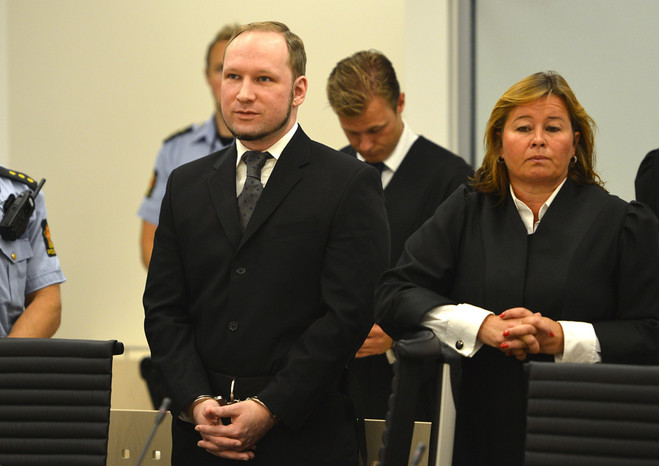 Ранее в ходе процесса прокуроры потребовали признать Брейвика невменяемым и отправить на принудительное бессрочное лечение. По мнению прокуратуры, действия и заявления подсудимого свидетельствуют о его явном помешательстве. Защита обвиняемого настаивала, что он вменяем и его место явно не в больнице. Адвокат попросил суд полностью оправдать Брейвика или назначить самое мягкое наказание. Липпестад заявил, что подсудимый самый обычный человек, поддерживал хорошие отношения с друзьями и коллегами. Адвокат подверг сомнению утверждения экспертов, заявивших, что Брейвик убивал без политических мотивов.