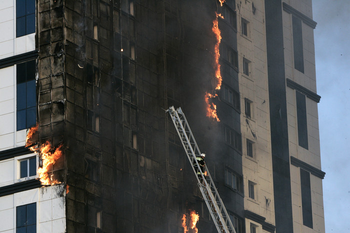 Возгорание произошло между четвертым и десятым этажами 40-этажного здания.