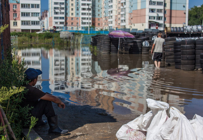 Гидрометеорологи говорят, что наводнение грозит побить рекорд, зафиксированный 115 лет назад. Утром в субботу в Хабаровске уровень воды в реке Амур поднялся до отметки 6,23 м. До максимума, отмеченного в 1898 году, осталось 19 см — ровно на столько вода в реке поднялась в пятницу. В субботу к 20.00 по местному времени (13.00 мск) уровень воды в Амуре у Хабаровска достиг отметки 6,3 м. В городе и ближайших поселках возводятся дамбы. Администрация города обратилась к руководству предприятий, которые расположены вдоль берега, с просьбой начать строительство защитных сооружений, которые выдержали бы подъем воды до отметки 7,5 м.