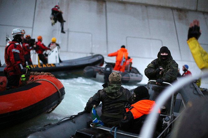 В среду утром двое активистов экологической организации Greenpeace были задержаны в Печорском море береговой охраной федеральной пограничной службы ФСБ России. Экологи прибыли в Арктику на ледоколе Arctic Sunrise под флагом Нидерландов около месяца назад, чтобы выразить «мирный ненасильственный протест» против освоения Арктики российской госкомпанией «Роснефть» и американской ExxonMobil. Однако провести эту акцию им не удалось — тогда российская сторона не пустила ледокол в Карское море, отказывая в прохождении по Северному морскому пути. До сих пор большую часть времени ледокол провел в Баренцевом море. На днях корабль вошел в Печорское море — там экологи планировали высадиться на нефтяную платформу Приразломная, принадлежащую ООО «Газпром нефть шельф». 18 сентября ледокол встал недалеко от платформы, двое активистов Greenpeace — гражданка Финляндии Сини Саарела и гражданин Швейцарии Марко Поло попытались с помощью альпинистского снаряжения забраться на Приразломную, но были задержаны пограничниками.