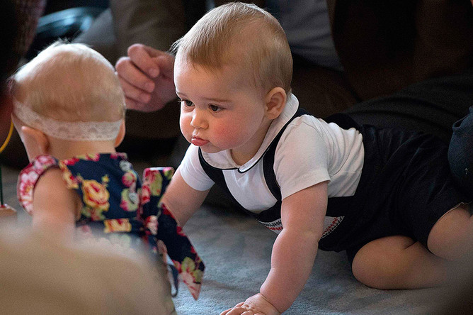 Будущий король Великобритании принц Джордж в свои восемь месяцев имеет мамины карие глаза и отцовские нос и брови. Он бесстрашно ползает и, не задумываясь, отнимает у других детей игрушки. Таким королевского малыша увидели новозеландские родители на встрече с прибывшими из Лондона гостями.
