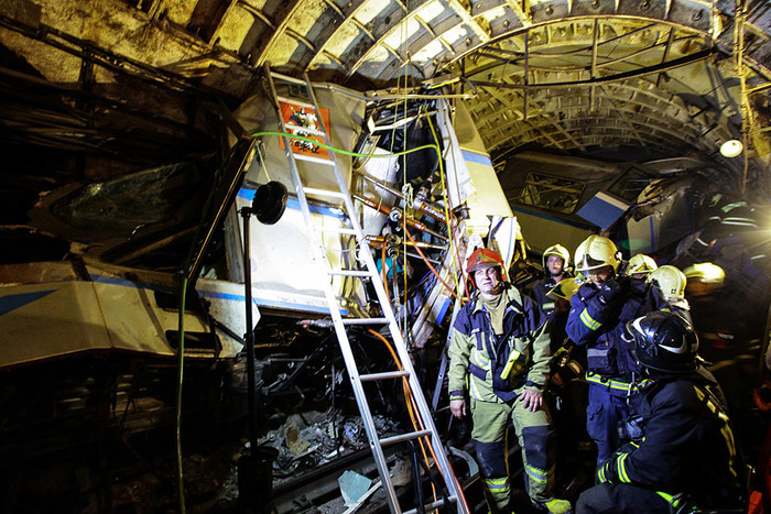 Трагедия произошла во вторник в 8.35 на Арбатско-Покровской линии между станциями «Парк Победы» и «Славянский бульвар». У состава, следовавшего на скорости 70 км/ч, по неустановленной причине с рельсов сошли три первых вагона. Первоначально были неясны масштабы трагедии. Только через полтора часа пошли новости сначала о пятерых погибших, потом об одиннадцати жертвах, дальше эта цифра стала увеличиваться. Спасатели выводили пострадавших десятками, многих пришлось выносить на руках. Пассажиры состава вышли сами по рельсам.