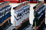 А вот и женский расчет почетного караула. Девушки прошагали в трех взводах по 17 человек, представляя сухопутные войска, военно-морской флот и военно-воздушные силы КНР. Их средний возраст — 20 лет, а рост — 1,78 м. Эх, таким бы в модели.