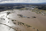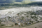 Затоплено большинство домов и других построек в городе, в том числе очистные сооружения и сверхскоростные пассажирские экспрессы, припаркованные на железнодорожной станции East Japan Railway.