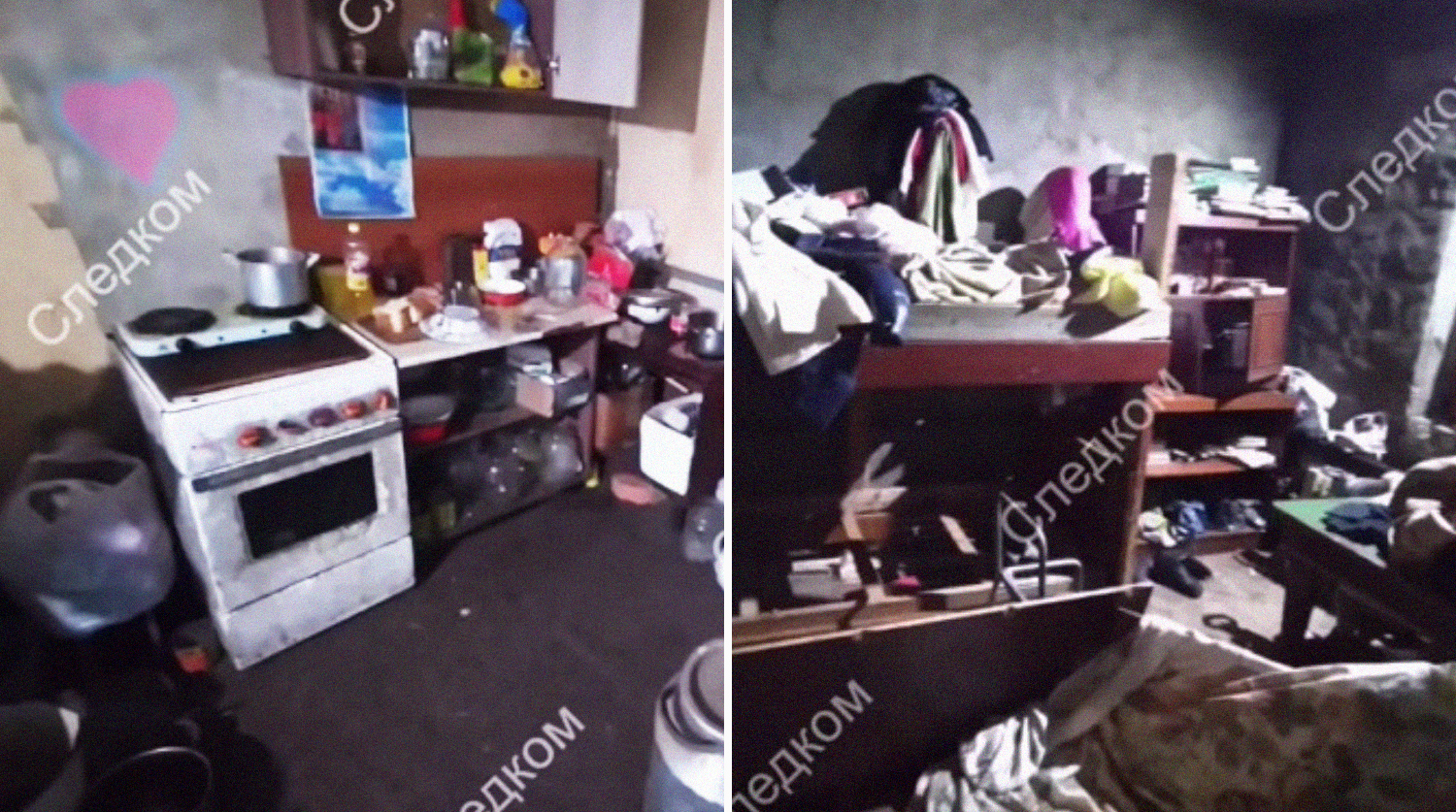 Судя по всему, семья жила в антисанитарных условиях: во многих помещениях даже нет обоев. На двухэтажных детских кроватях кучами валяется детская одежда, кухня заставлена грязными банками, кастрюлями и сковородками с едой, в подвале стоит старый, ветхий диван и шведская стенка.
