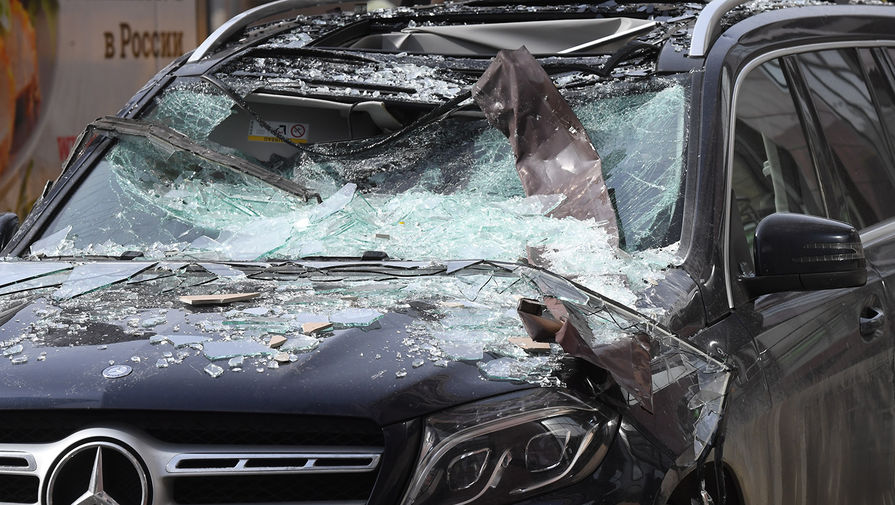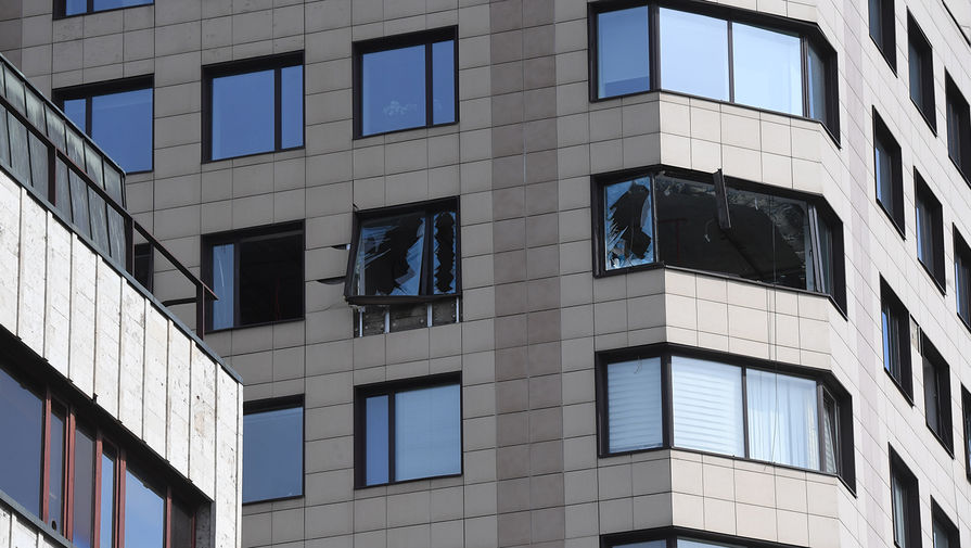 Телеканал РЕН ТВ опубликовал видео с места происшествия. На кадрах видно, что практически на всем восьмом этаже бизнес-центра выбиты окна, а также слетела облицовка здания на близстоящие машины.