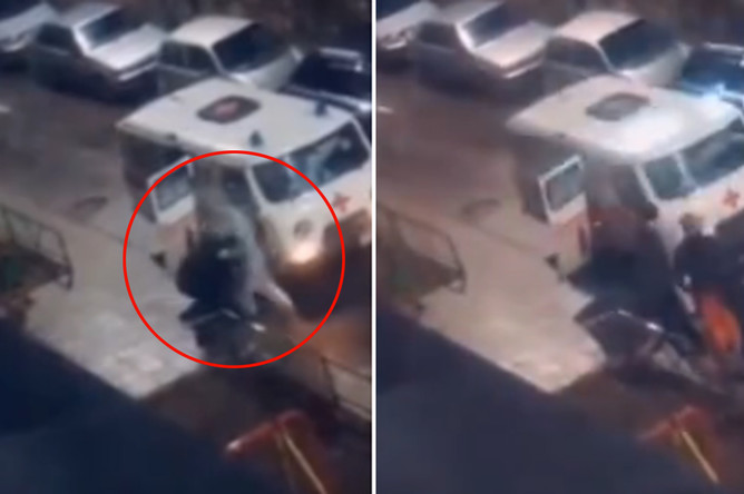 Видео, на котором неизвестные ночью избивают сотрудников скорой помощи, опубликовал местный портал Сhepetsk.ru. На нем видно, что изначально мужчина в белом защитном костюме ловко откидывает от себя двух нападавших. Однако уже через несколько секунд злоумышленники объединяют усилия и валят медика на землю, продолжая наносить удары. Прервать расправу над фельдшером смогла только сирена, которую включил водитель скорой помощи.
