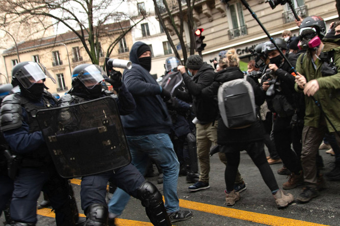 В десятках французских городов в субботу 30 января, прошли новые акции протеста против правительственного законопроекта «О глобальной безопасности», который, по словам критиков, ограничит возможность съемки полицейских на видео и публикацию их изображений в социальных сетях, в частности, для документирования случаев жестокости полиции.