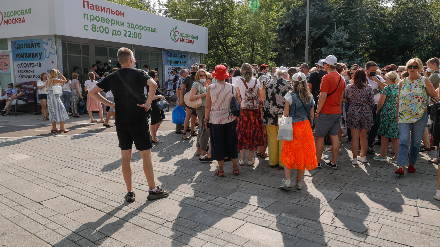 Как сообщает издание «Подъем», в очереди в павильон на Теплом Стане на юго-западе Москвы собрались свыше 400 человек. Сотрудники пункта вакцинации записывают всех желающих в лист ожидания и вызывают пофамильно.