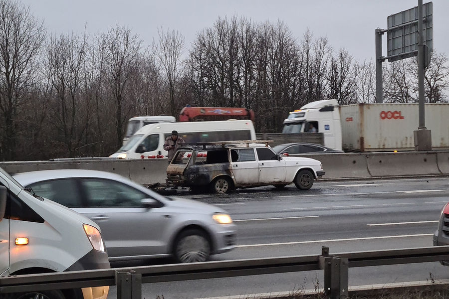 Так или иначе полицейские начали погоню за нарушителем, который, пытаясь оторваться от них, протаранил не менее пяти машин, одна из которых — «Волга» — загорелась, а такси улетело в кювет. Информации о пострадавших автомобилистах пока не было.