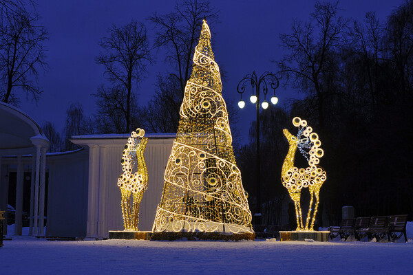 В преддверии Нового года Манежную площадь украшают светящимися гирляндами и оригинальными световыми инсталляциями. Именно здесь расположена одна из главных площадок фестиваля «Путешествие в Рождество». На протяжении всех зимних каникул здесь будут проходить концерты и тематические мастер-классы.