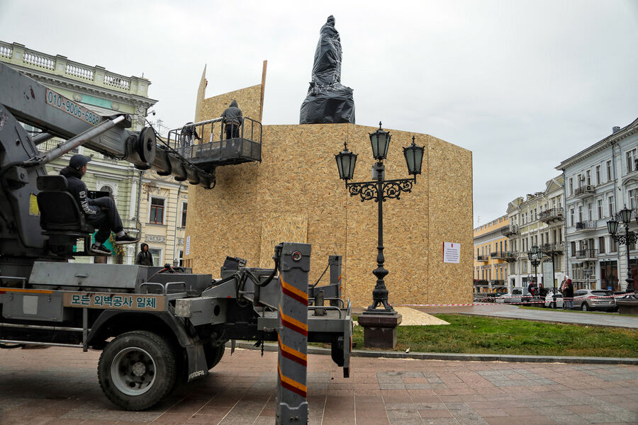 «В Одессе с утра приступили к демонтажу памятника российской императрице Екатерине II. Подъехать к площади невозможно, там все перекрыли и не пропускают», — говорится в сообщении.