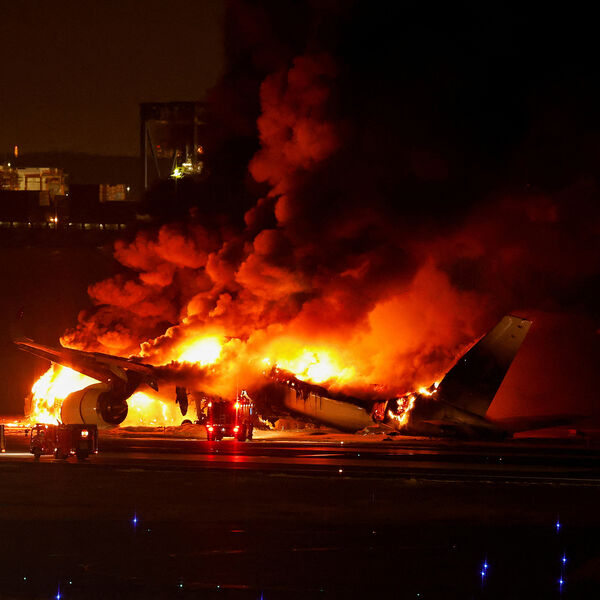 Во время рулежки в него въехал Airbus A350, прибывающий из Саппоро. Оба самолета после столкновения загорелись.