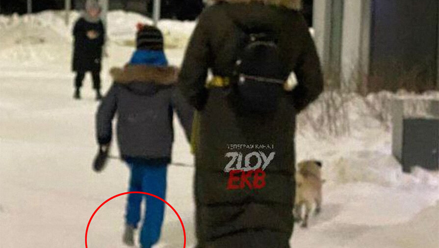 В Екатеринбурге женщина заставила сына гулять по снегу без обуви, сообщило региональное издание E1.RU. Инцидент произошел в Солнечном микрорайоне, на опубликованных очевидцами снимках видно, как мальчик в одних носках выгуливает мопса, а рядом с ним идет женщина.