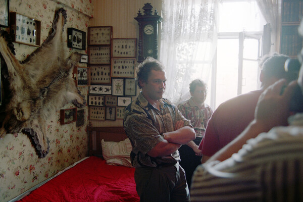 Представители налоговой полиции производят изъятие финансовых документов фирмы АО «МММ» в квартире Сергея Мавроди (у окна), 1994 год
