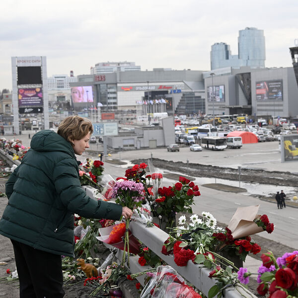 У разрушенного ТЦ появился стихийный мемориал жертвам теракта. Люди продолжают приносить к нему цветы, священники Одинцовской епархии ежедневно до 29 марта каждые несколько часов служат здесь панихиду.