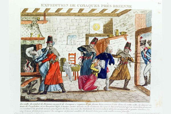 Газеты наполеоновской Франции сыпали страшными сообщениями о зверствах казаков, которые грабили, выпускали преступников из тюрем и насиловали всех на своем пути: «Одну пожилую женщину изнасиловали на теле ее убитого накануне мужа. Другую молодую девушку после изнасилования проткнули пикой, и на следующий день она скончалась. Третью после группового изнасилования бросили в шлюз. Четвертая тщетно искала себе убежища и защиты в церкви».